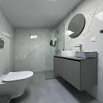 La Villa Sunset dispone de un cuarto de baño con ducha a ras de suelo y también inodoro separado. También se ofrece secador de pelo, toallas y zapatillas.